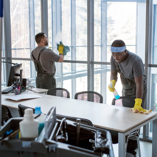 Services de nettoyage et de désinfection pour la remise en parfait état de vos bureaux et locaux professionnels suite à des aménagements, des événements spécifiques, ou des interventions nécessitant une propreté irréprochable.